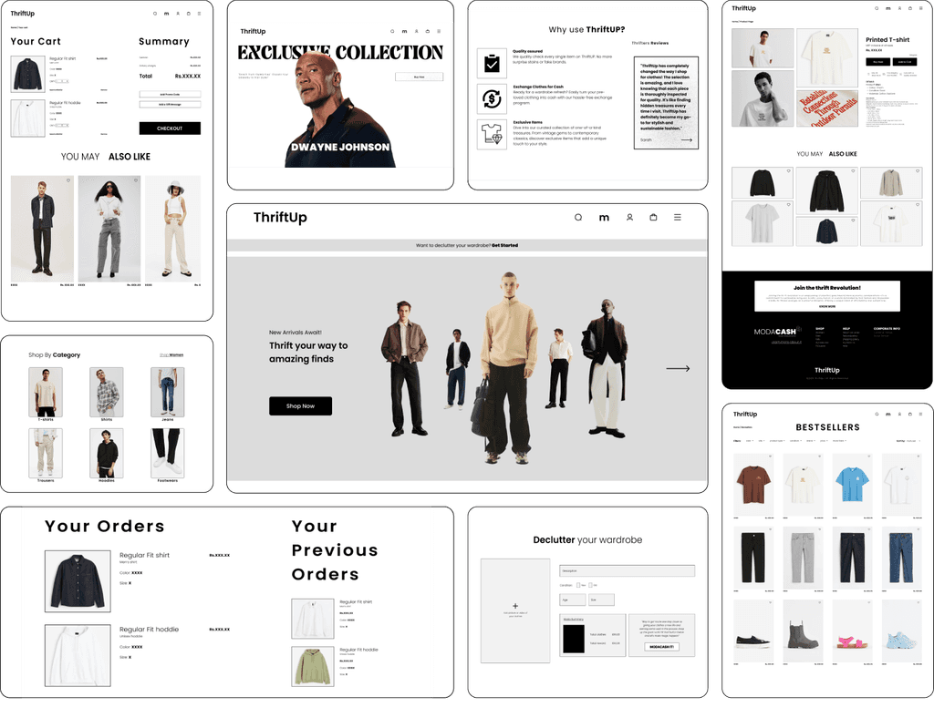 Thrift Up is a thrift store which offers young adults affordable, stylish second-hand clothing through a user-friendly platform. Features include the ModaCash program, which incentivizes recycling by providing cash or store credit for used clothes, and detailed listings with high-resolution images to ensure transparency and trust. This solution promotes sustainability and convenience, catering to eco conscious, budget-minded consumers.